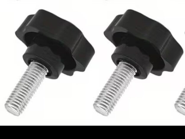 they come with fixing screws, washes bolts and now with black handled twist screws.